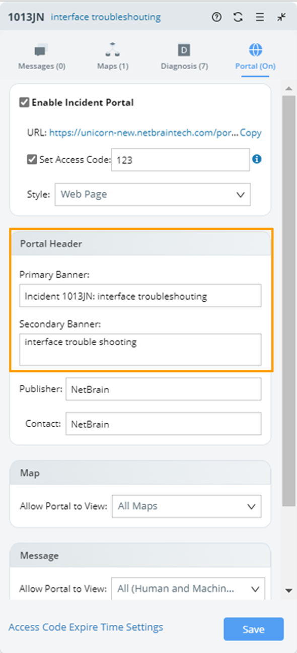 You are allowed to customize the incident portal in the incident pane and control what is visible inside the Incident portal. In addition, the portal function is intuitively presented in the incident pane to encourage users to use it for collaborative troubleshooting.