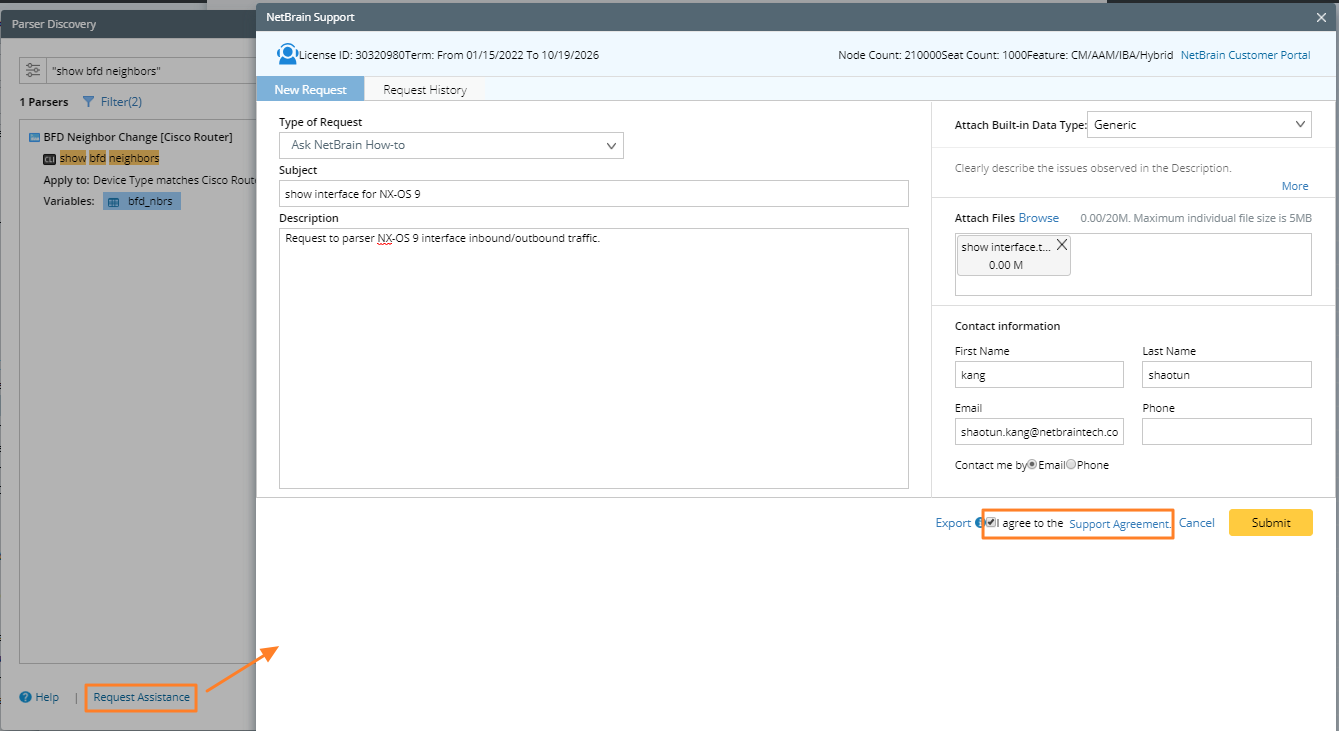 If you cannot find the Parser you want in the Parser Library, you can submit a ticket to NetBrain by clicking Request Assistance: