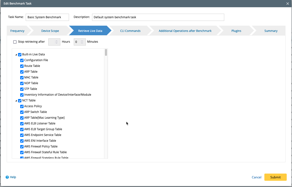 - Built-in Live Data is essential data universal for any network, such as Configuration File, Route Table, ARP Table, MAC Table, NDP Table, etc.