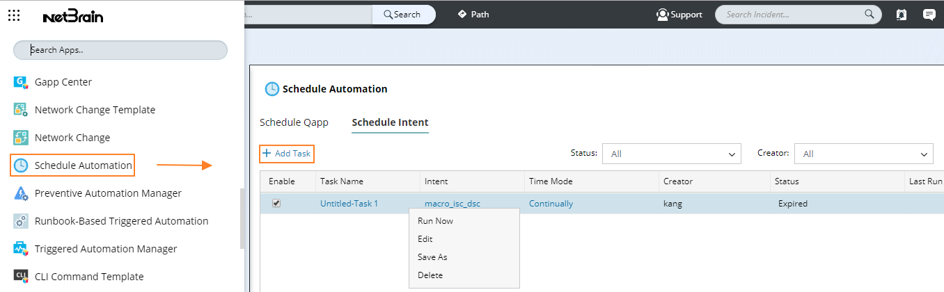 Note: You can also manage the scheduled intent by navigating to the Doman Managemnt page > Schedule Task > Schedule Intent. |