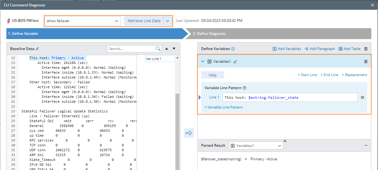 - Build an intent to parser the key metric of date obtained by command show failover.