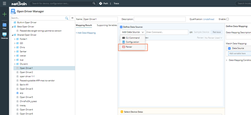 Parser Discovery Window will only show up when you need to select a Parser or load a Parser in NetBrain Automation Functions: