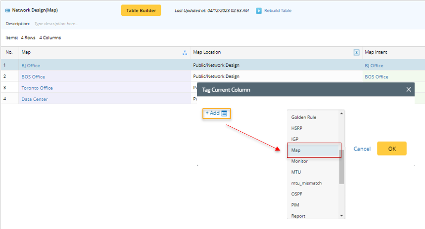 - In the pop-up dialog, click + Add to select tags (for example, tag "Map") from the drop-down list.