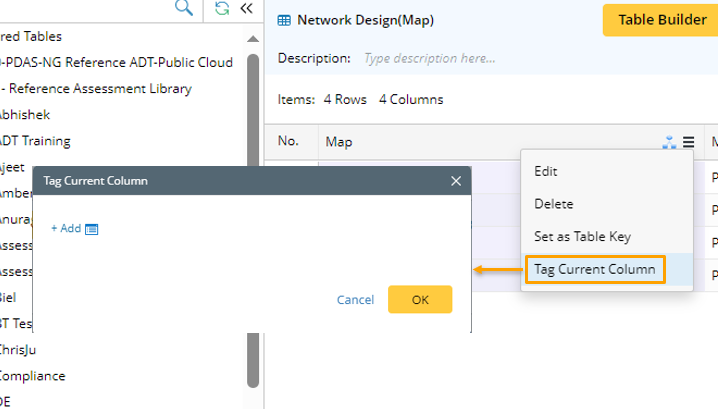 - Tag map column or map automation column: Tag Current Column dialog from the drop-down menu of the target map column or map automation column, then enter the tags.