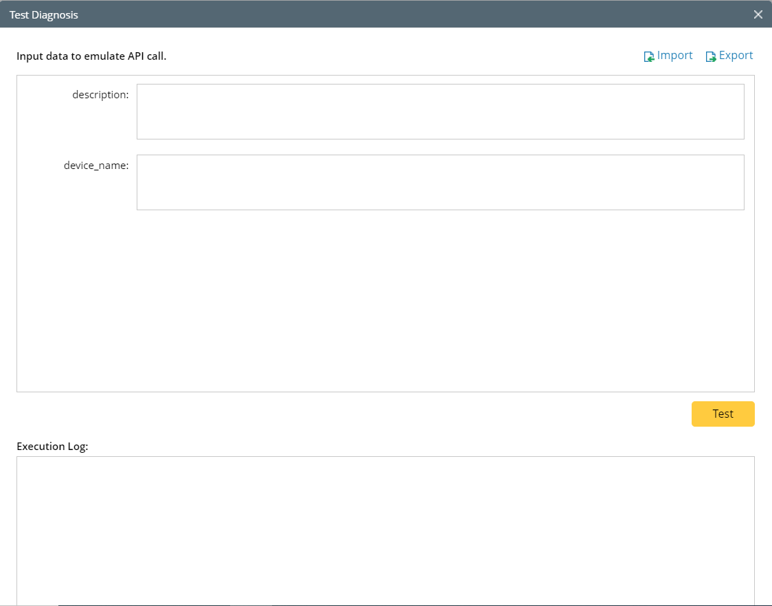 - In the Test Diagnosis window, define the following settings: