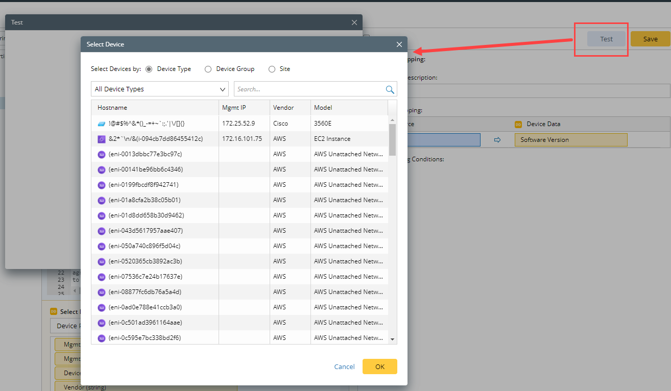 - On the Select Device window, select the device you would like to test on. Click OK.