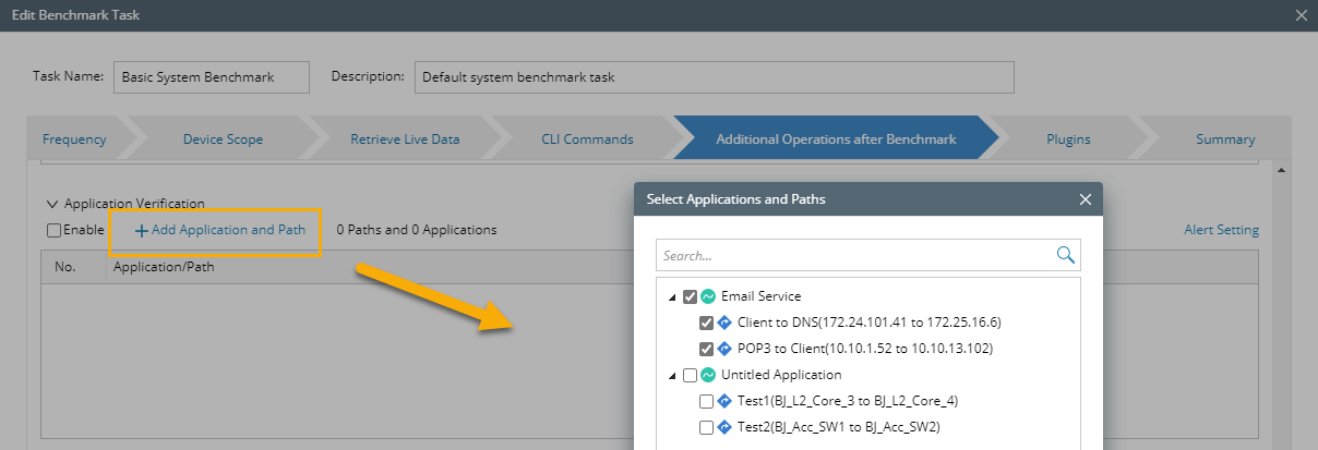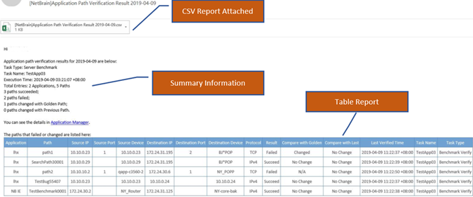You can set your NetBrain system to periodically monitor the application paths and send alerts and emails when the path changes.