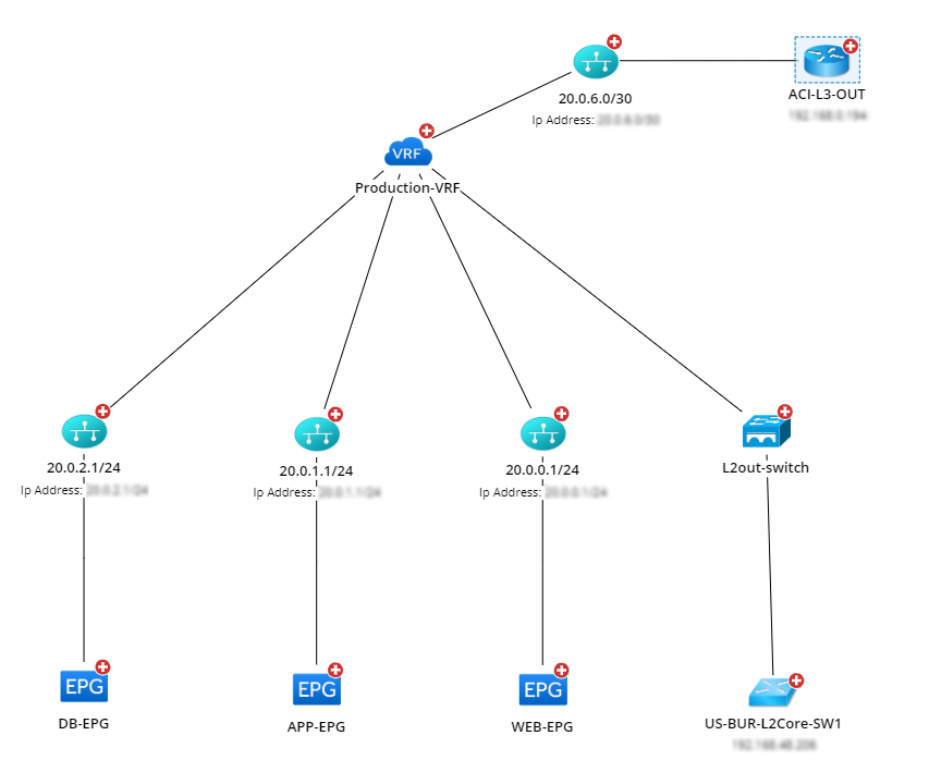 - L3 Out and L2 Out switches in the VRF