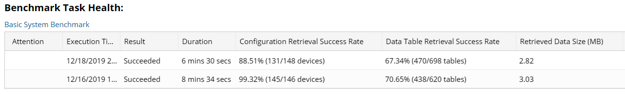 | Latest CLI Configuration Retrieval Failed Devices | The devices that NetBrain successfully retrieved configurations via CLI before but failed to update CLI configuration in the last attempt | count > 0 |