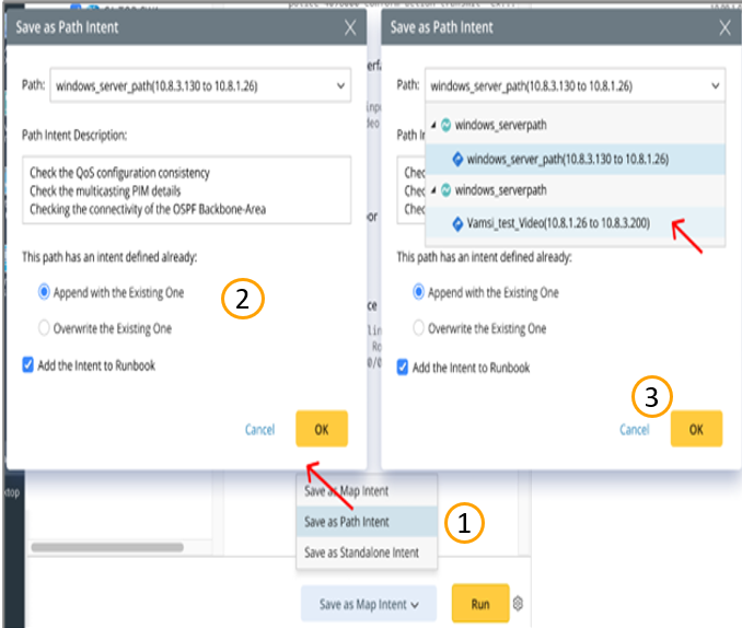 - Append with the Existing One: The devices and command sections of the saved intent will be added to the existing path intent.