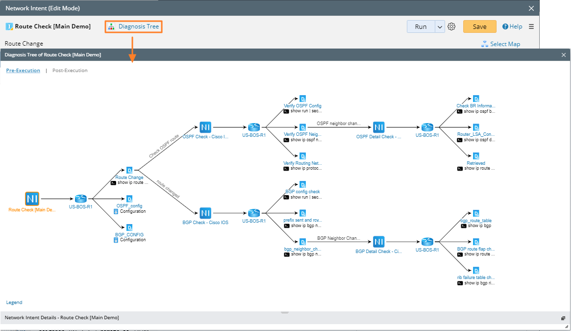 After Follow-up NIs are defined, you can browse the Diagnosis Tree (Pre-Execution) of home NI to view the entire multi-staging diagnosis design, which consists of :