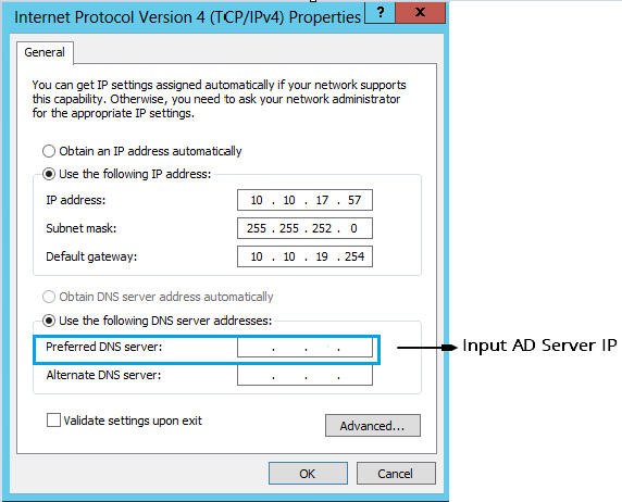 2)Configure the IP address of the AD server as the preferred DNS server through Network Settings, and then restart network service.