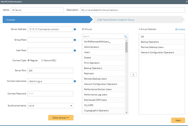 Tip: Click Validate to verify whether the selected groups still exist on the AD server. Click the