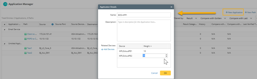 The weight of an application is the sum of device weight and path weight.