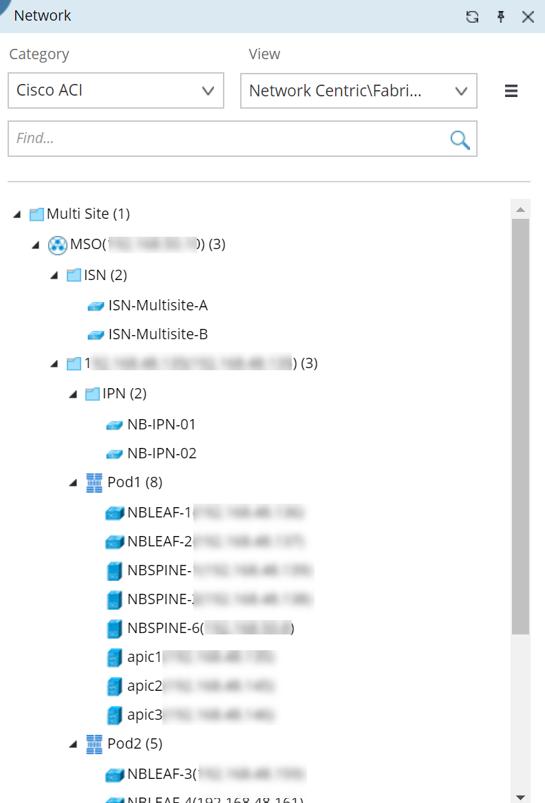 1.In the Network pane, select APIC Domain under the Cisco ACI > Network Centric > Fabric POD View.