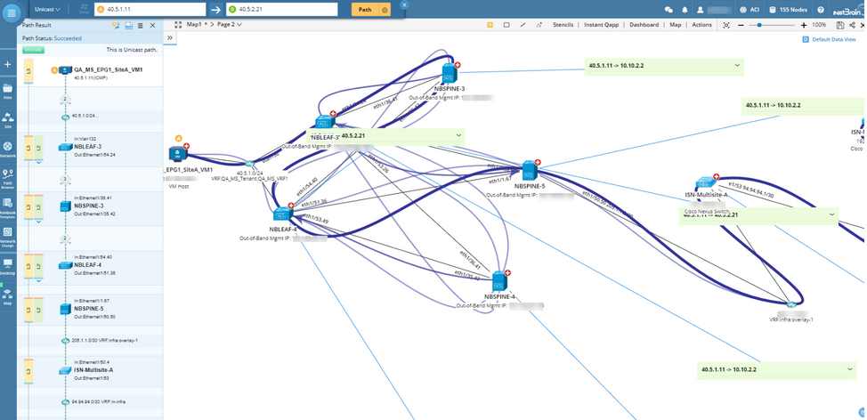 The system supports end-to-end path calculation (including Anycast Gateway and Contract Path) across an ACI fabric, and you can analyze the traffic flow between two endpoints.