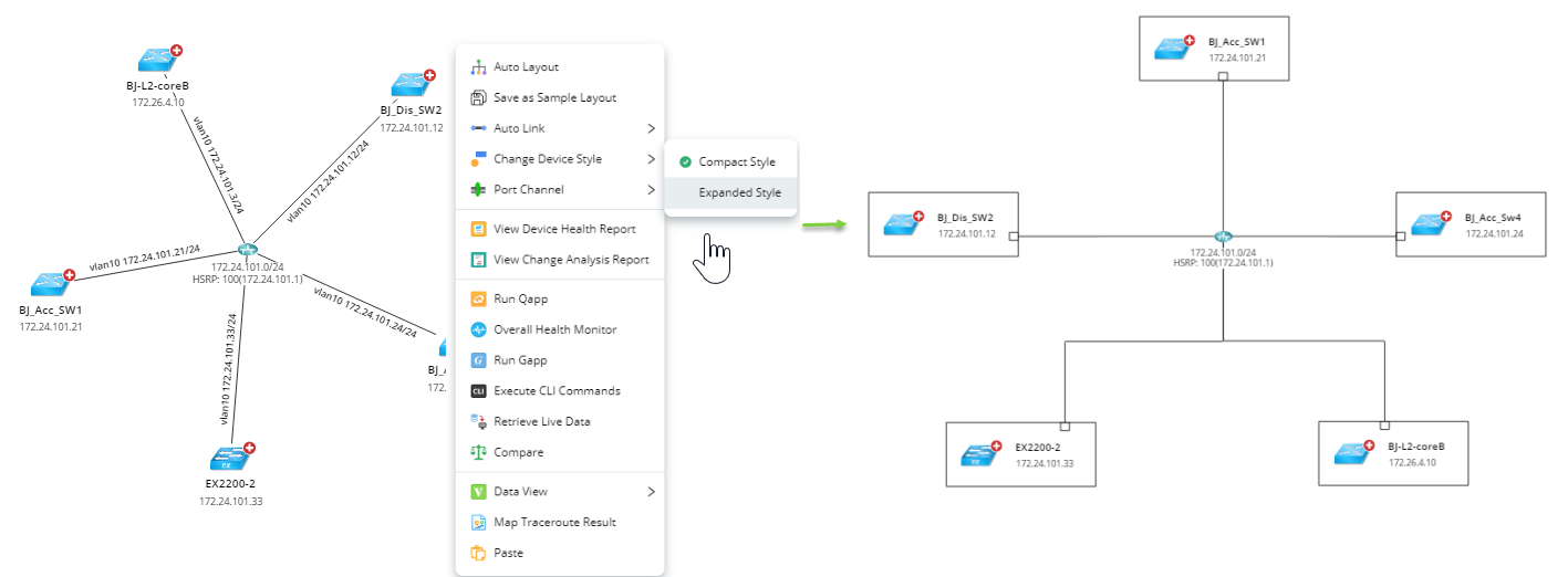 Tip: When you create a map from scratch, the involved devices are displayed in the Compact Style by default.