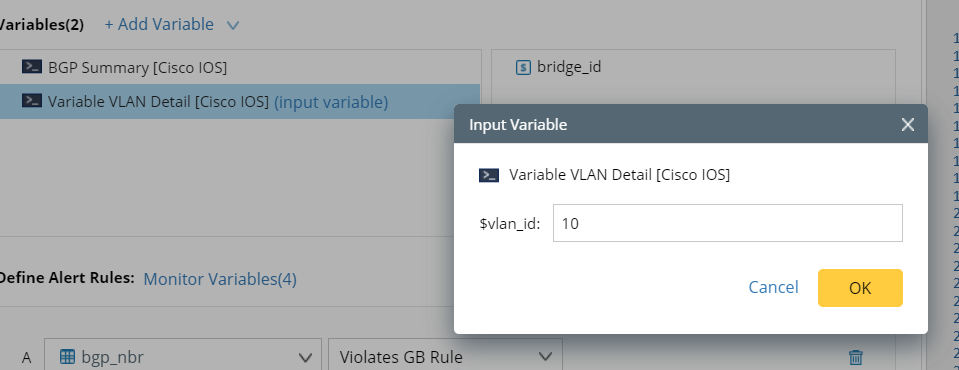 In order to define the parser variables with parameters in the commands, you need to manually enter the value of the parameter, so the system knows which command to issue when retrieving the data.