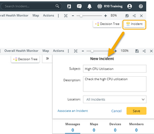 Note: If the map has associated an incident, clicking the