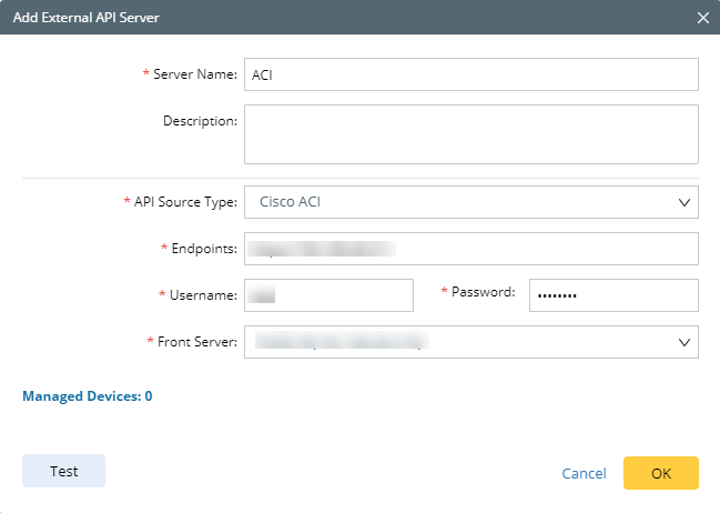 5)Select Cisco ACI from the API Source Type drop-down menu.