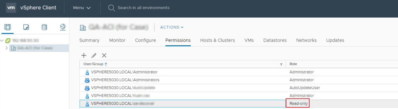 Prerequisites: A user account with the minimum read-only role is required to enable NetBrain to discover a vCenter network.