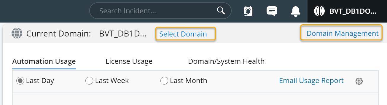 ▪Click Select Domain to go to more tenants and domains, or create your domain. ▪The hyperlink Domain Management is available only if you have the role of the domain administrator, or the privileges of domain management. |