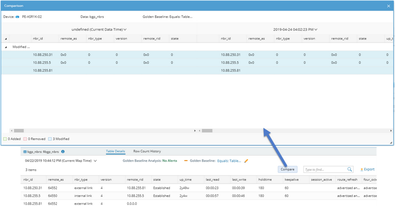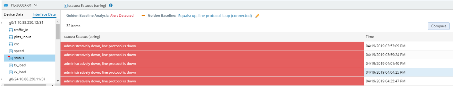 After Applying a Data View Template to a map, you can view not only the last copy of historical data and Golden Baseline, but also the live data analysis. When it doesn't match the Golden Baseline Rule, it will be highlighted in red color to alert users.