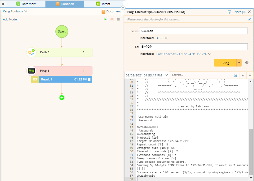 2.In the From field, enter a hostname GW2Lab to specify the source device. You can also click on the text box to select a Front Server, or select a device in the domain.