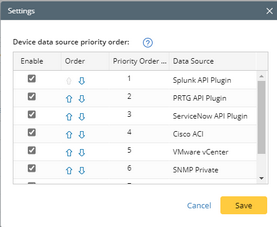 When multiple data sources (CLI/SNMP/API) for mapping relationships exist in the system, the order to apply these data sources in automation functions can be globally prioritized.