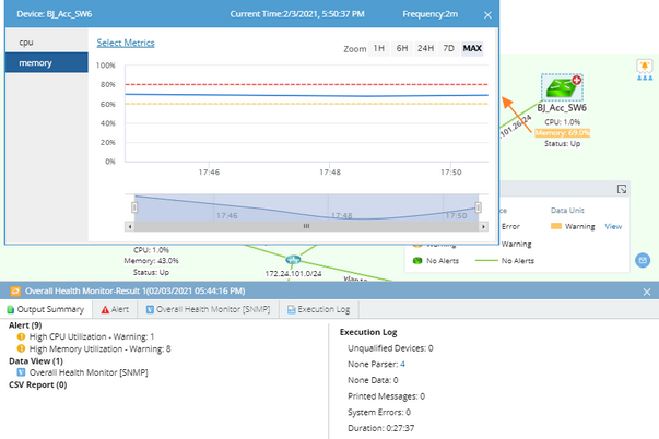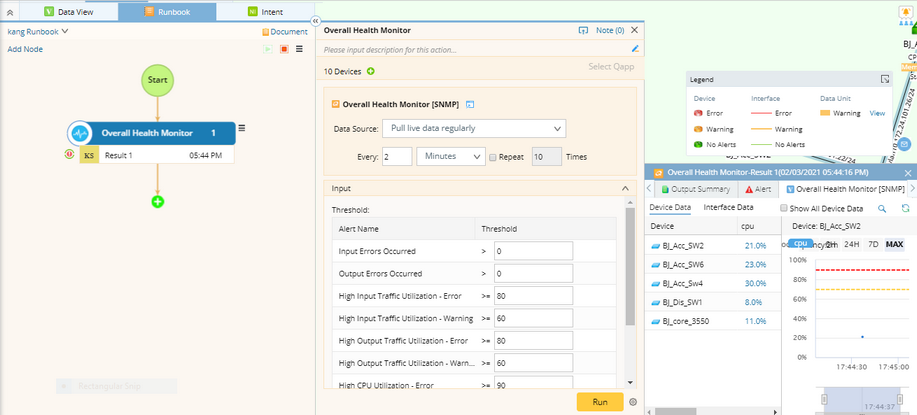Example: Run Overall Health Monitor on core devices to get key performance metrics using SNMP.