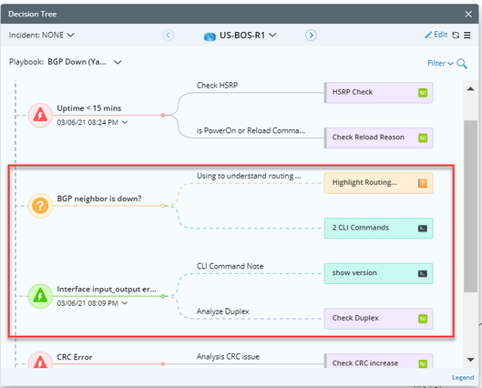 Note: If multiple CLI commands are associated with a single Flash Probe or Hypothesis, they will be grouped into a CLI Group automatically. The CLI summary view will list the grouped CLI commands. Note: The pre-defined notes will be directly displayed in the CLI summary view instead of being displayed above the link between Flash Probe/Hypothesis and CLI command. |