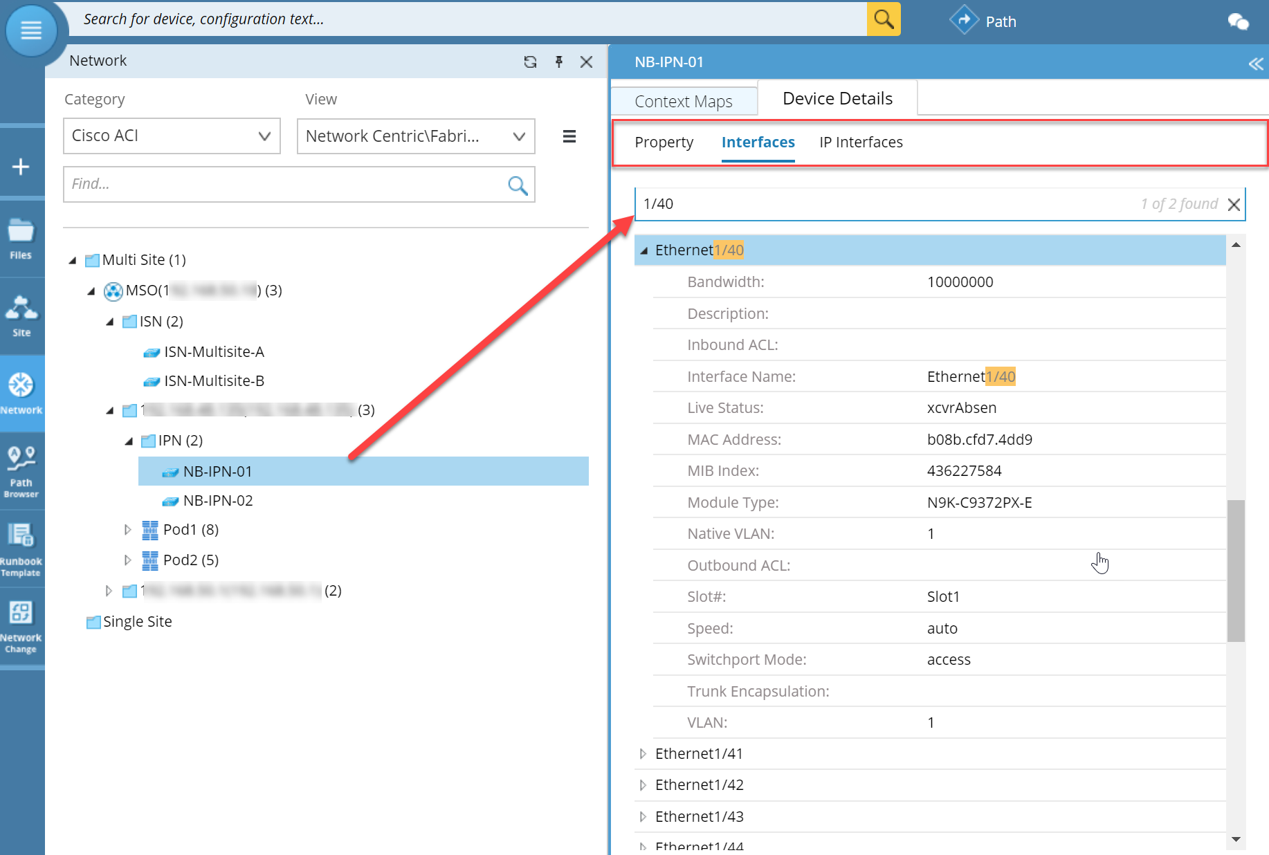 3.Expand the Multi Site node to view MSO (Multi Site Orchestrator) info.