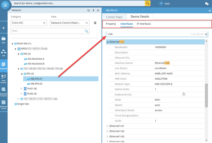 7.Click an IPN node and select the Device Details tab to view more information about the node.