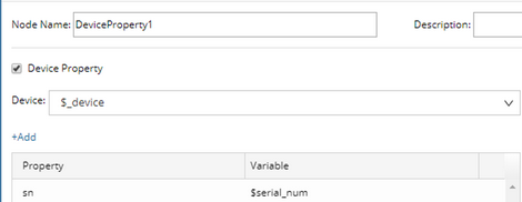 11. Define the Device Property1 node as follows: