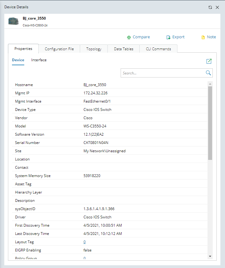 Both built-in and customized devices properties are stored in the Global Data Repository. You can browse, modify, and export device properties from the Device Details pane.