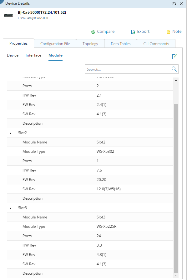 1.In the Device Details pane, select Properties > Module. If a device does not have modules, then the Module tab will not be displayed.