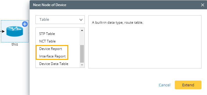 oDevice/Interface Report — used to store the device or interface attributes, and can be only extended from a Device node.