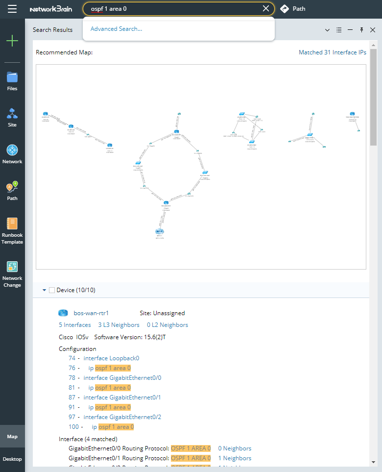 2.Press the Enter key on your keyboard to start searching. Devices and interfaces matching with the OSPF are diagrammed and auto-linked in a preview map.