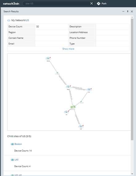 Note: The recommended map in search results shows at most 20 devices and 10 links for each device (including those links connected through a media).