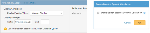 Enable or disable the dynamic golden baseline calculation for the variable. Note: This setting only applies to parser variables. |