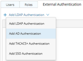 icon and select Add AD Authentication from the drop-down list. A wizard is opened to guide you through the steps to connect to the AD server and configure the tenant or domain access privileges for the imported user accounts.