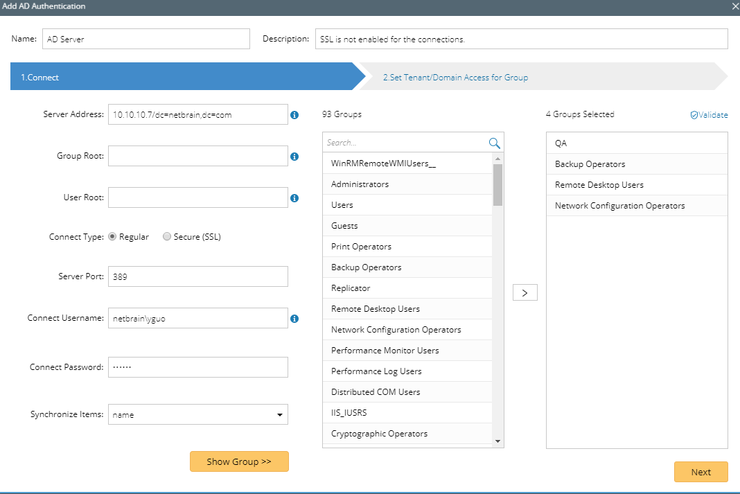 Tip: Click Validate to verify whether the selected groups still exist on the AD server. Click the