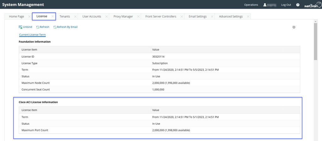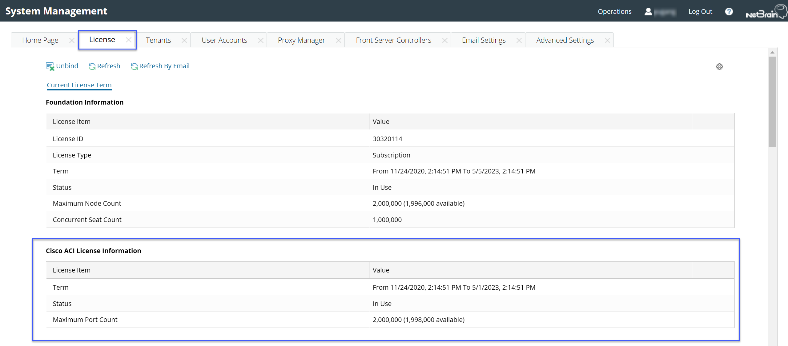 Note: Before continuing with the following steps, make sure your ACI license has been activated. Here is an example: