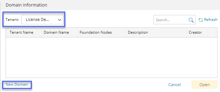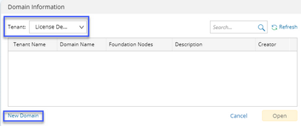 6.Select the tenant you created from the quick access toolbar, and click New Domain.