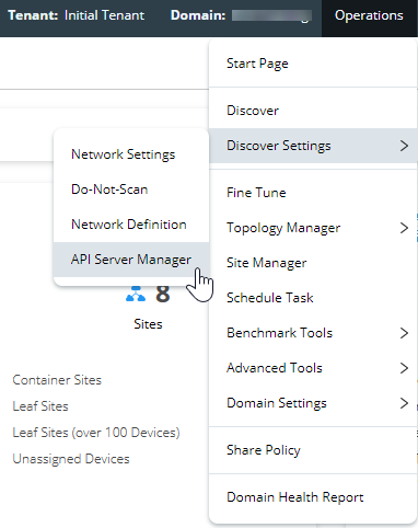 2.Click Operations from the quick access toolbar and select Discover Settings > API Server Manager.