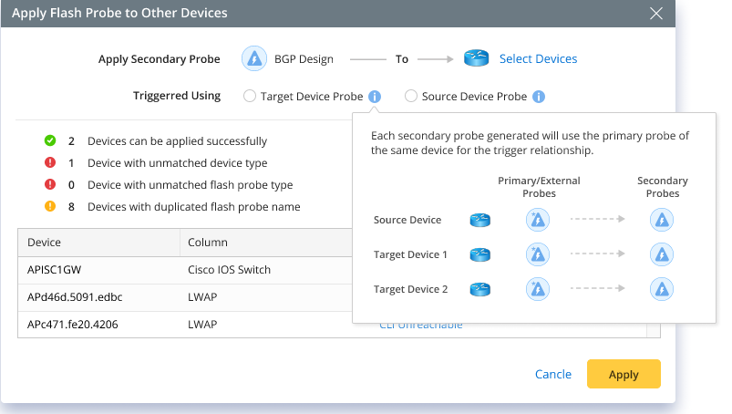 •Source Device Probe: Enabling all the second probes to be triggered by the current device.