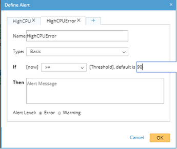 Tip: You can define multiple alerts for a variable. For example, define an error alert when the CPU usage exceeds 90.