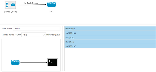 Device Queue represents a list of network devices that will be accessed by a Qapp in order within the canvas during the Qapp execution.