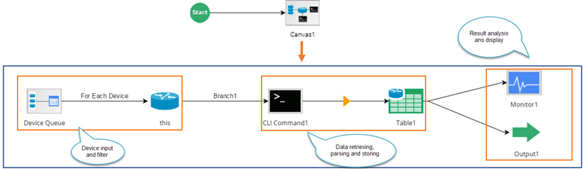 A Canvas contains an independent workflow from retrieving device data to analyzing data to outputting results. Canvas consists of multiple nodes and their relations as well as functions are illustrated as follows: