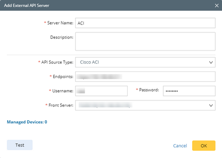 5)Select Cisco ACI from the API Source Type drop-down menu.